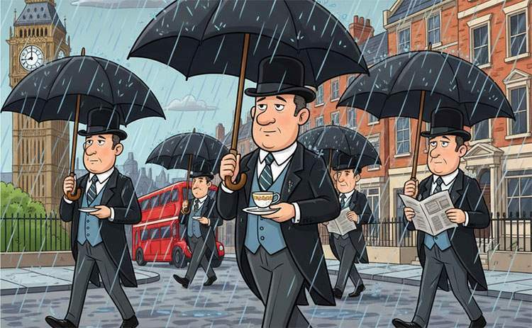 Stereotyp „brytyjskiej flegmy” (tzw. stiff upper lip) wywodzi się z wiktoriańskiego systemu edukacji, który uczył młodych dżentelmenów całkowitego panowania nad emocjami w każdej, nawet tragicznej sytuacji. Psychologicznie rzecz biorąc, ten chłodny dystans stał się idealnym paliwem dla komizmu, ponieważ kontrast między dramatycznym zdarzeniem a beznamiętną reakcją bohatera to fundament klasycznej struktury żartu. Socjologicznie dowcipy te utrwalają wizerunek Anglika jako osoby niezłomnej, dla której nawet koniec świata nie jest wystarczającym powodem, by przerwać Five o’clock i nie dopić swojej herbaty z mlekiem.