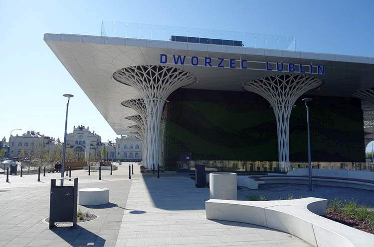 Nowy dworzec autobusowy znajduje się tuż obok stacji kolejowej Lublin Główny. I zachwyca swym wyglądem architektonicznym. Białe podpory mogą przypominać coś, co turyści znają z Singapuru. Nie są tak duże, pięknie podświetlane i nie grają muzyki, ale ich oryginalny widok robi wrażenie. Zresztą trzeba to przyznać: nowy dworzec autobusowy wygląda efektownie, nowocześnie i raduje wzrok. Ciekawie kontrastuje też z bryłą zabytkowego dworca PKP z 1877 roku.