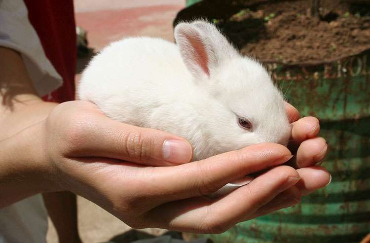 10. Hotot – te króliki miniaturki są idealne do hodowli domowej, ze względu na łagodny charakter. Mają białe futro i charakterystyczne czarne oczy z ciemnymi obwódkami. Ich uszy są średniej długości i zaokrąglone na końcach, a waga wynosi około 2 kg.