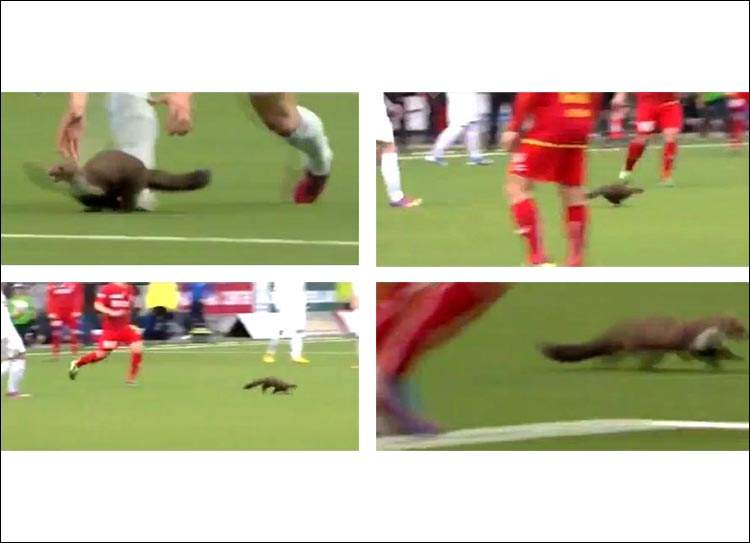 Wczorajszy mecz piłki nożnej pomiędzy drużynami FC Thun a FC Zurich trwał w najlepsze, gdy na boisko wbiegła… kuna – gryzoń z rodziny łasicowatych. Nie wiadomo w jaki sposób trafiła na boisko, ale kibicom na trybunach i obu drużynom dała pokaz sprinterski. Oczywiście sędzia przerwał spotkanie, do czasu złapania gryzonia. Nie jest łatwo złapać tak szybko biegające po boisku zwierzę, ale piłkarz Loris Benito bohatersko rzucił się na gryzonia i schwytał go, co przypłacił ugryzieniami dłoni. Mecz zakończył się kilkanaście minut później, niż zakładano.