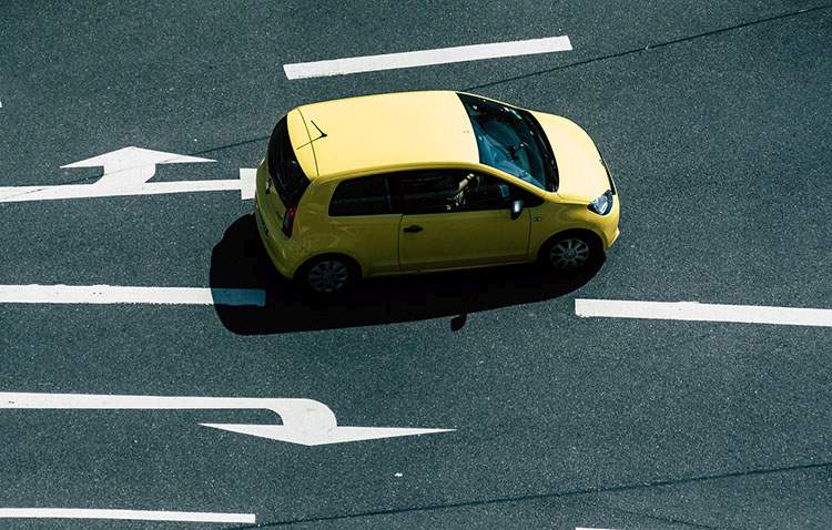 Pełny stop na strzałce: To absolutna podstawa. Nawet jeśli nic nie jedzie, musisz zatrzymać auto tak, by „siadło” na amortyzatorach. Kamera musi zarejestrować brak ruchu kół.