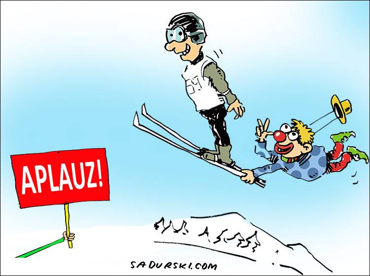 Główny dźwiękowiec odpowiedzialny za całe zamieszanie wydaje się z siebie dumny. Chwali się używaniem nowoczesnego syntezatora z wieloma przyciskami, więc w zależności od sytuacji emituje określony dźwięk. Myślicie, że publika z koncertu rockowego i odgłosy kijków nart to wszystko? Nie do końca, bo ów spec podczas mistrzostw uruchamiał nawet odgłos szczekającego psa.
